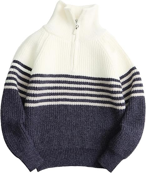 8-9 YAŞ erkek Çocuk Yarım Fermuarlı Çizgili Triko Kazak