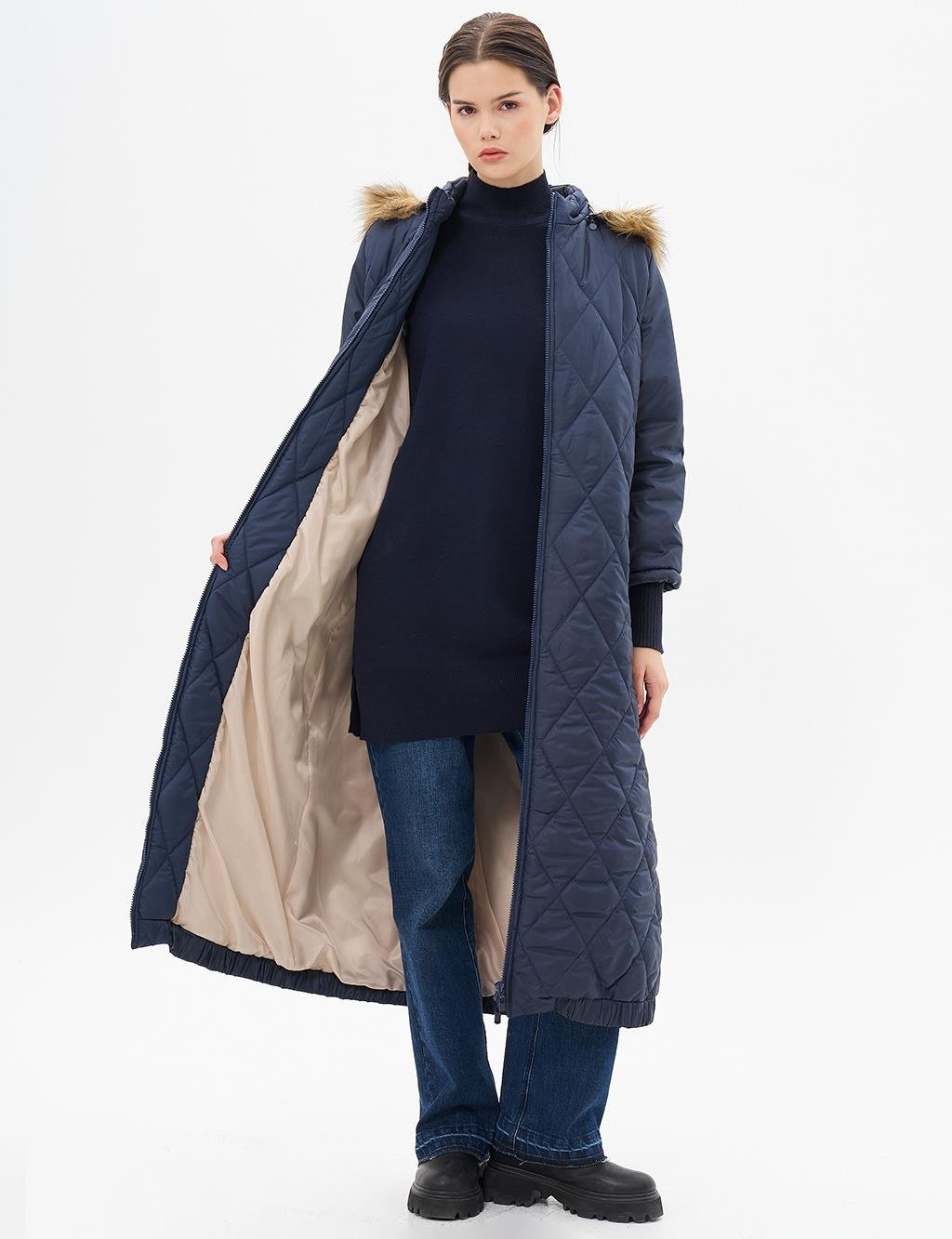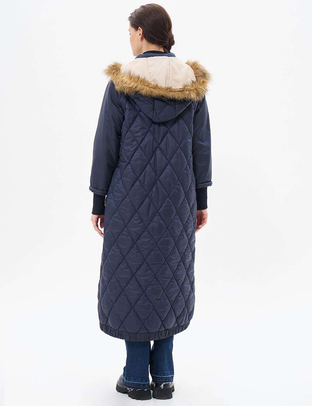 Kapüşonlu kapitone anorak mont