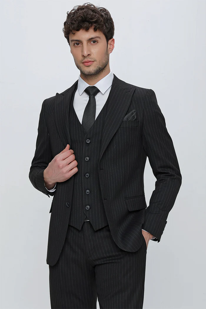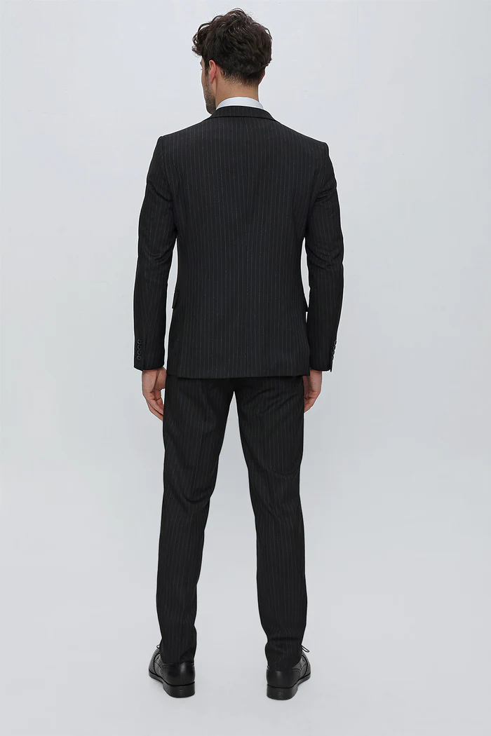 Slim Fit Çizgili Kırlangıç ​​Yaka Takım Elbise